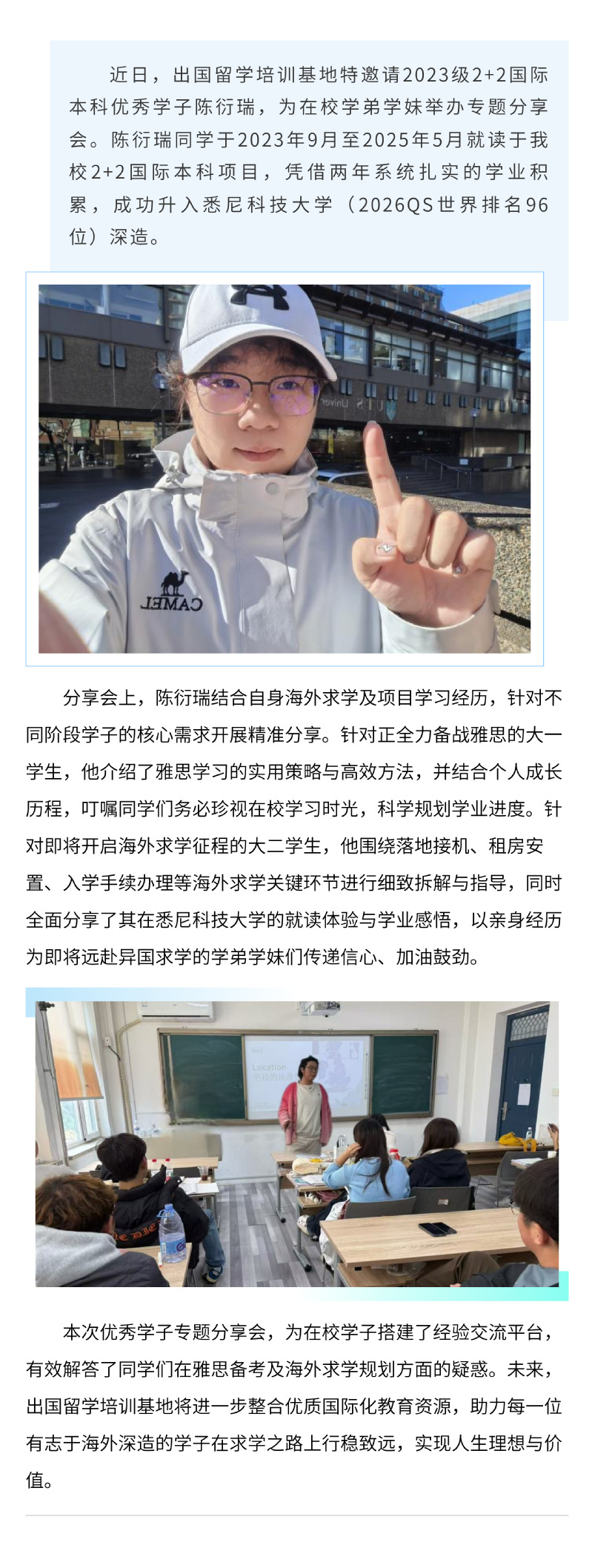 优秀学子倾情分享,薪火相传助力远航——出国留学培训基地举办专题分享会